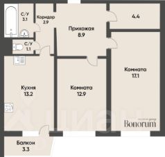 Если вы ищете квартиру для семьи с детьми, где каждому будет комфортно, — этот вариант для вас. Так же есть гардеробная 4,4 м2, что избавит вас от необходимости загромождать комнаты шкафами.