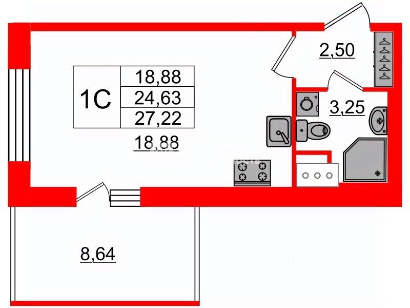 Данная планировка уникальна своей лоджией, она имеет правильную форму с панорамным остеклением в пол, площадь лоджии 8,64м2. При желании из лоджии можно сделать комнату.
