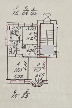 - 7,6 м2., высота потолков - 3,28 м2., санузел раздельный.