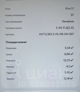 Площадь квартиры. 34,8