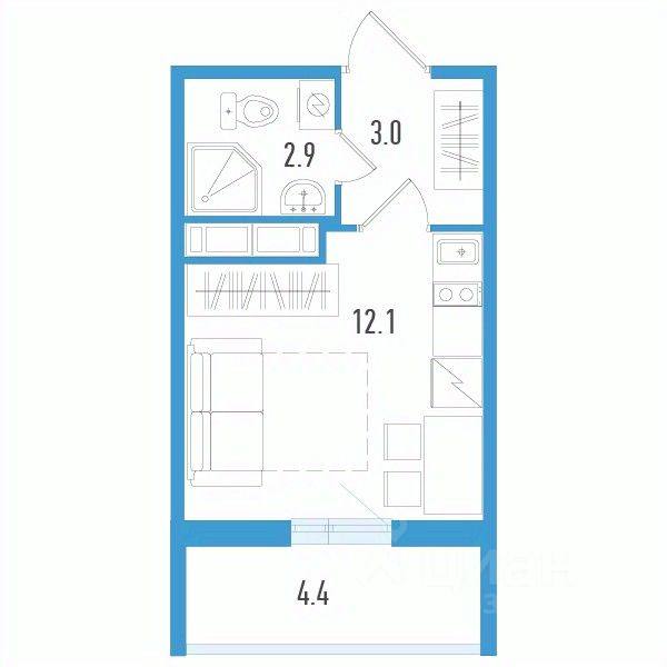 Продаётся студия в сданном доме (Старорусский пр-т, 3к2 (Дом 1)), срок сдачи: II-кв. 2025, общей площадью 19.3 кв.м., на 12 этаже.