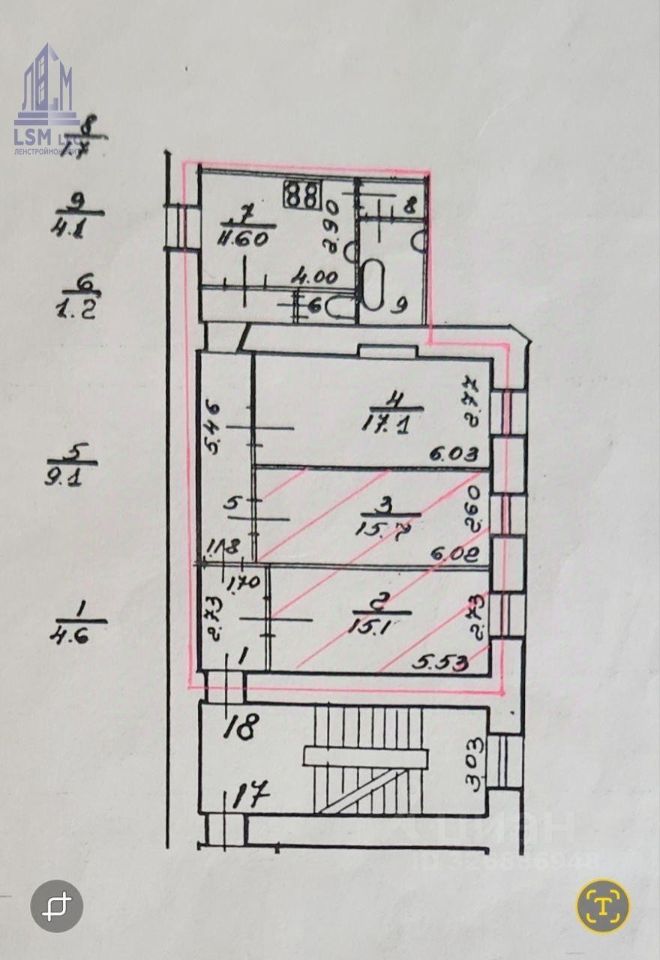 Изолированные комнаты: 17, 16 и 15 м