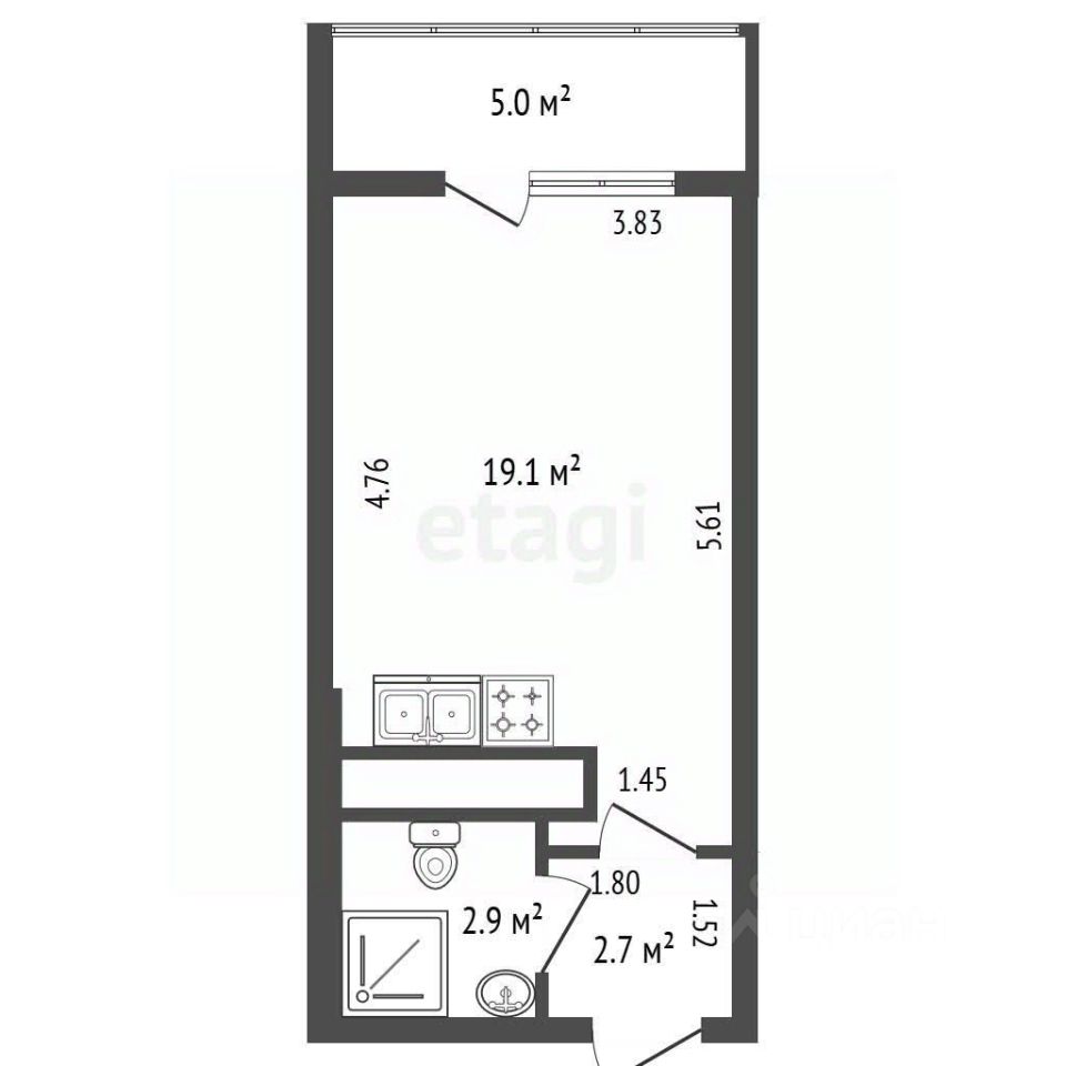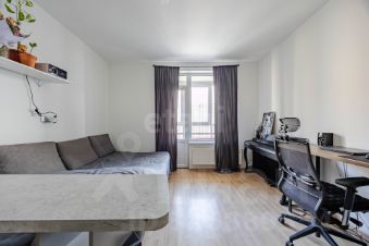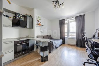 Выполнен качественный евроремонт, санузел оборудован современной сантехникой и душевой кабиной. Пространство организовано для комфортного зонирования кухни и зоны отдыха, создавая ощущение простора и света.