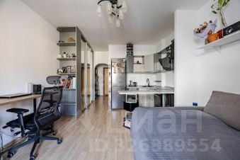 Продаётся светлая и уютная студия на 9 этаже современного монолитно-кирпичного дома 2013 года. Общая площадь квартиры — 24,7 м², жилая — 20 м², потолки 2,75 м. Квартира с функциональной планировкой, 1 совмещённый санузел, 1 лоджия с видом на улицу, перепланировок не было. Продаётся полностью с мебелью — можно заехать и жить или сразу сдавать в аренду.
