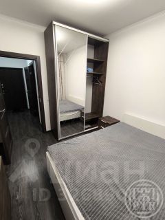 Кровать , вместительный шкаф-купе с зеркальными дверями (внутри — полки, вешалки, ящики), прикроватные тумбы.
