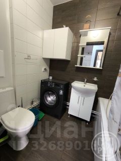 Компактно и продуманно: ванна, умывальник с тумбой, зеркало с подсветкой, навесной шкаф, стиральная машина Beko (в хорошем состоянии).