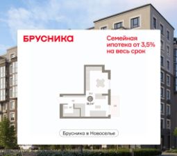 Однокомнатная квартира-студия с предчистовой отделкой в ЖК "Брусника в Новоселье" на 5 этаже. Общая площадь: 38.33 кв.м., площадь гостиной 26.3 кв.м., из которых 5 кв.м. выделено под кухонную зону. Все окна выходят на одну сторону. В квартире один балкон, один совмещенный санузел. Высота потолков 2.7 м.