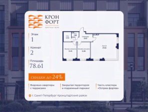 Предлaгaeтся квартира плoщaдью 78.61 кв.м в жилом кoмплексе "Kронфoрт. Центpальный" в Санкт-Петeрбурге (Кронштадт). Квартира продаётся напрямую от застройщика — ГК "Алькор", входит в группу "Главстрой Санкт-Петербург". Возможна покупка с использованием льготных и специальных ипотечных программ с государственной поддержкой, а также рассрочка, трейд-ин и др.