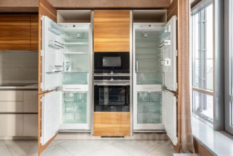 Кухня с фасадами из натурального дерева и техникой европейских брендов.