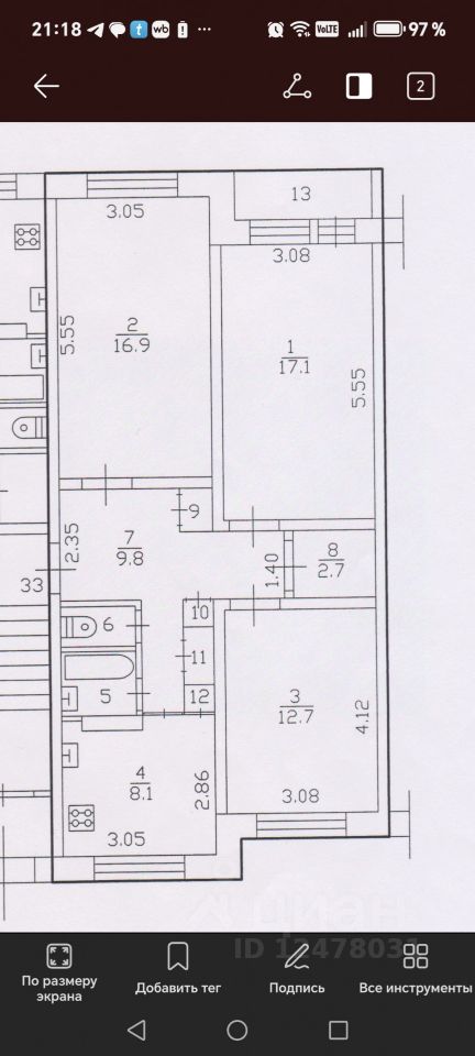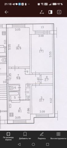 Общая площадь квартиры с лоджией 73.4 кв.м., площадь 72.2 кв.м., комнаты все изолированные 17.1+16.9+12.7 кв.м., площадь кухни 8.1 кв.м.