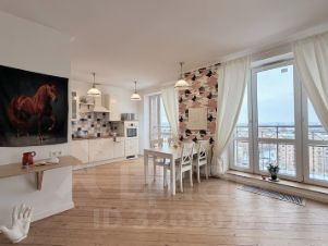 Просторная 65 м² на самом высоком этаже. Дом — свеча среди пятиэтажек: соседи только внизу, перед окнами — небо и крыши. Панорамные окна в пол во всех комнатах И на балконе. Света — море.