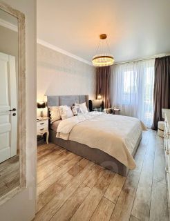 Квартира полностью меблирована, остаётся вся техника, мебель и декор, подобранные с вниманием к стилю и атмосфере.