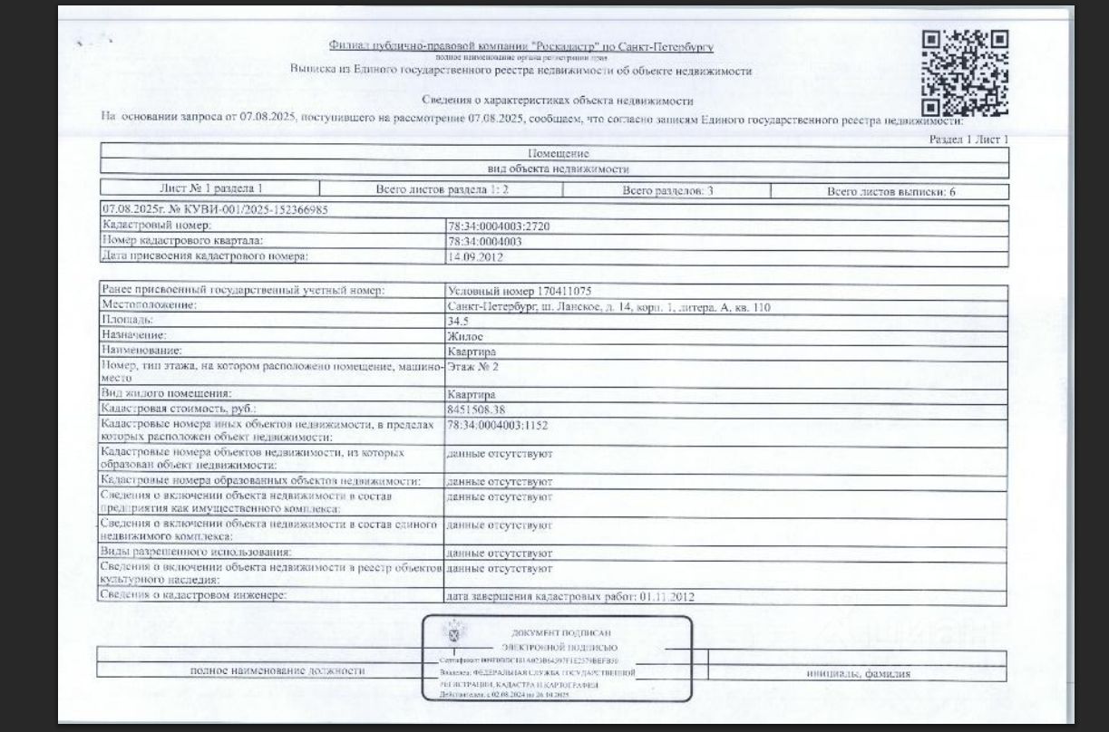 Подвергнутое аресту принадлежащее должнику Гавриловой О. В. находящееся в залоге у АО "Эксперт Банк" имущество: квартира общей пл. 34,5 кв.м. по адресу: г. Санкт-Петербург, ш. Ланское, д. 14, корп. 1, лит. А, кв. 110 кад. 78:34:0004003:2705. Информация о задолженности по взносам на капитальный ремонт ФССП не предоставлена. Согласно представленной ФССП форме 9 от 02.07.2025 г. в квартире не кто не зарегистрирован. Сведениями о лицах с правом пожизненного пользования не располагаем. Обременение - ипотека, запреты регистрационных действий ФССП.