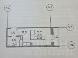 Общая площадь: 27,55 кв. м.