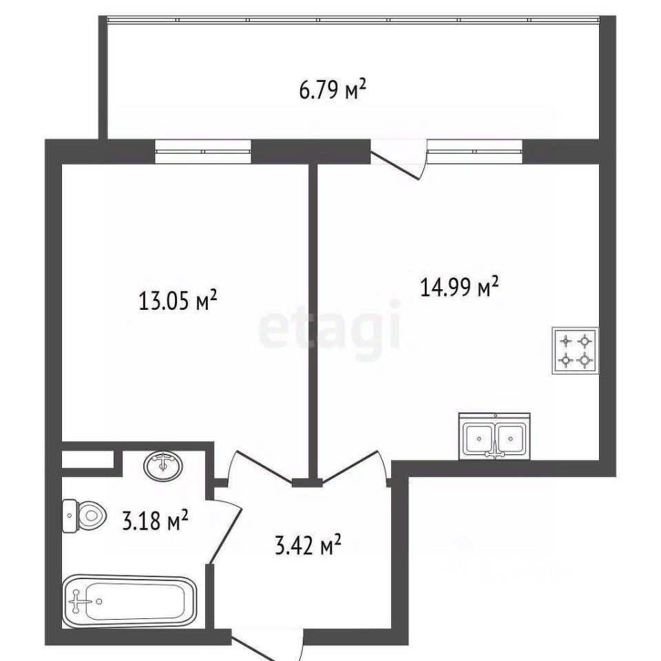 Эргономичная планировка включает в себя просторную кухню-гостиную, функциональную прихожую с зоной под хранение вещей, жилую комнату, где поместится спальная зона, рабочее место и гардероб. Так же весомым преимуществом является балкон площадью почти 7 м2, где можно оборудовать зону хранения или оборудовать кабинет.