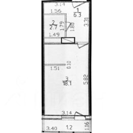 Студия 27.1 кв.м (по кадастру) + теплый балкон 3.7 кв. м. Потолки 2.7 м.