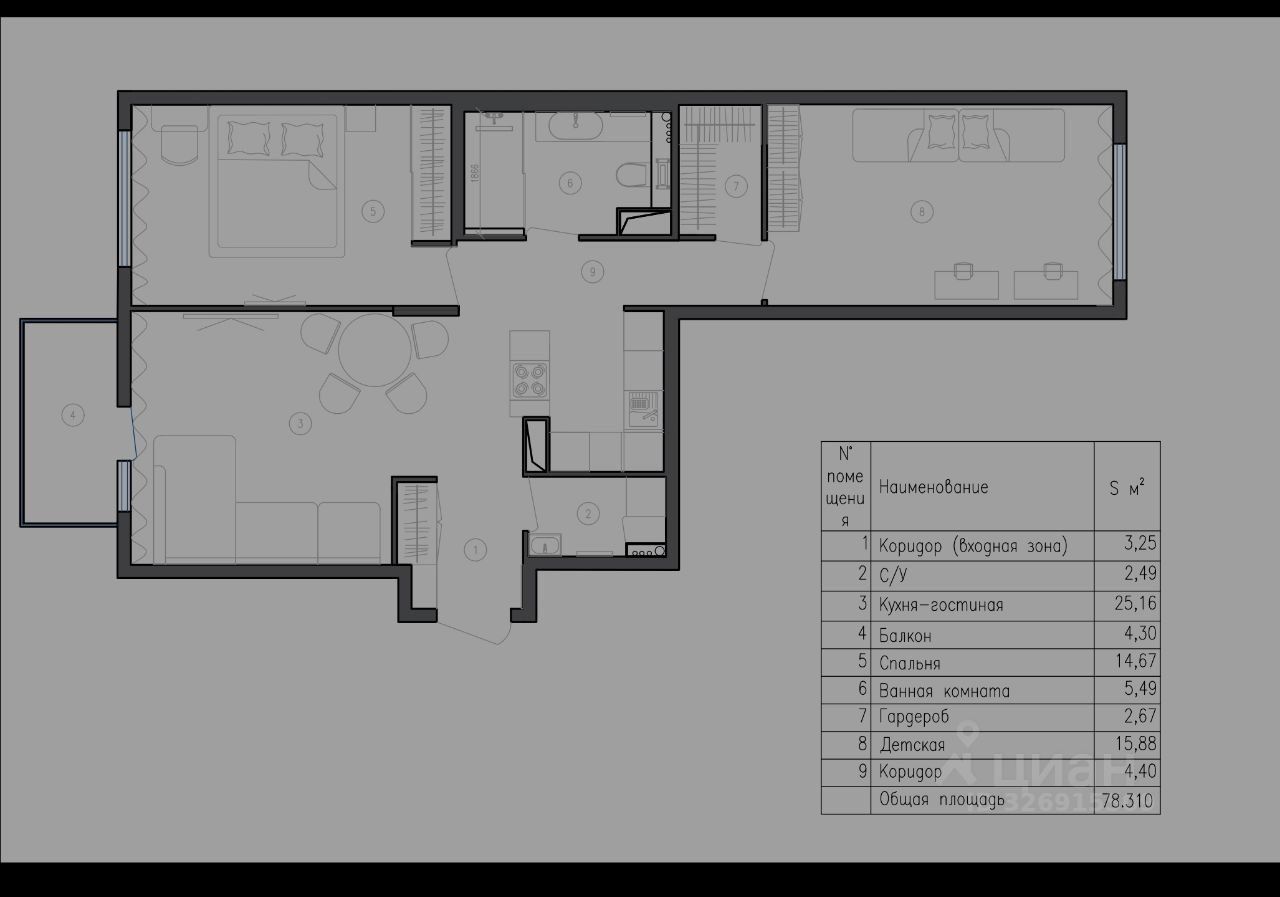 Квартира полностью готова для жизни.