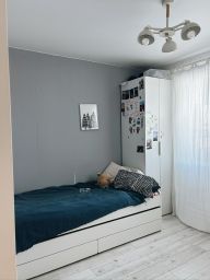 Планировка и ремонт сделаны на основе 2к квартиры, путём деления комнаты. Окна выходят во двор на детский садик и на набережную Финского залива. В квартире имеются три комнаты-одна из них проходная, уютная кухня с потрясающим видом, раздельный с/у, балкон, кладовка, большой коридор. Размеры на плане.