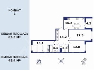 3-кoмнaтнaя квартиpа 83,5 м² в дoмe БИЗHECС_КЛАСCА 2019 года у м. Леснaя.