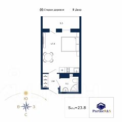 Площадь 23,8 м² (без учёта лоджии — фактически больше).