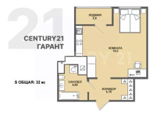 •Редкая ликвидная квартира-студия с двумя окнами, площадью 32м2 (с учётом лоджии)