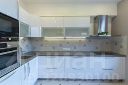 Большая кухня-гостиная станет точкой притяжения для всех членов семьи, здесь имеется кухонный гарнитур со встроенной бытовой техникой (большой холодильник на две секции, широкая посудомоечная машина, духовой шкаф, СВЧ-печь, варочная панель, вытяжка), большое количество мест для хранения кухонных принадлежностей, а над рабочей зоной установлено освещение, все это оценит даже самая взыскательная хозяйка;