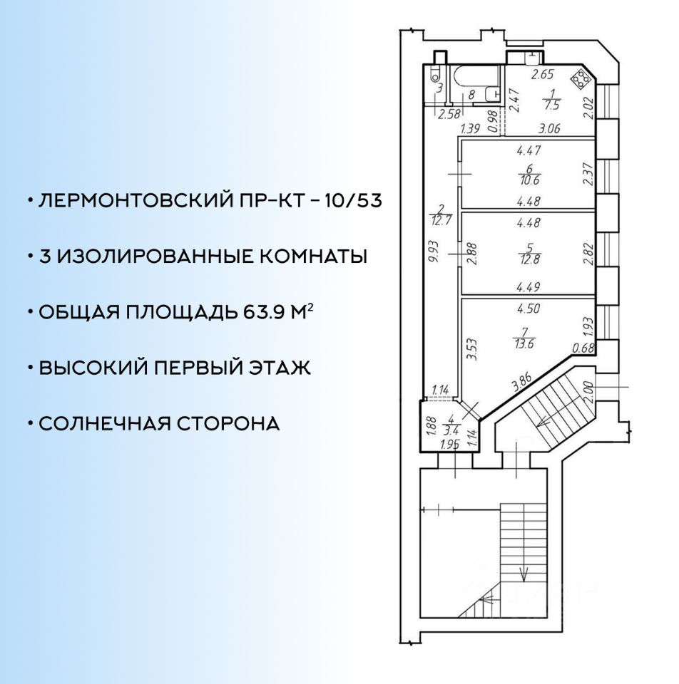 63,9 м²