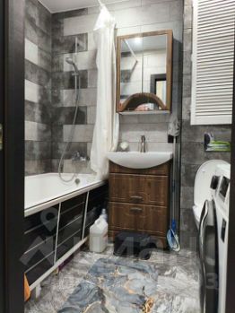 Большая ванна, инсталляция, раковина со шкафчиками и дополнительные шкафы для хранения. Установлен теплый пол. Оборудованы выходы под стиральную машинку. Выполнена качественная разводка сантехники с использованием магистральных фильтров, установлены проточный водонагреватель на 6,5 кВт и система защиты от протечек.