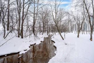 -Парк в пешей доступности (2-3 минуты), дальше которого идет речка