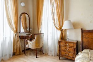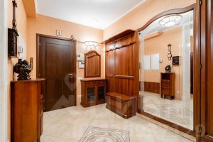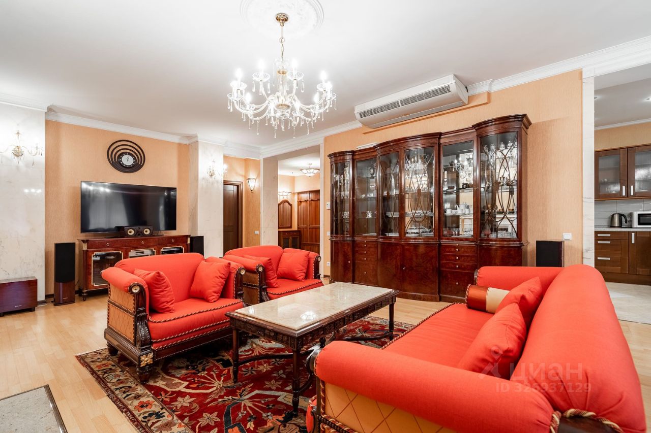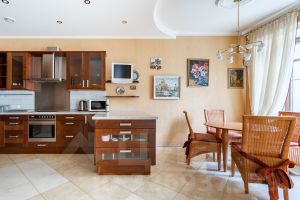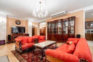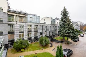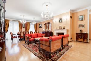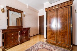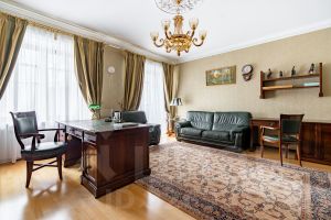 В квартире выполнен ремонт в стиле неоклассицизма. Функциональная планировка состоит из кухни, просторной гостиной с камином, трех изолированных комнат, гардеробной и двух санузлов. В подземном паркинге предусмотрено одно машиноместо.