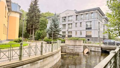 Статусный комплекс от именитого застройщика. Закрытая ухоженная территория, сквозь которую проходит водный канал, круглосуточная служба охраны, видеонаблюдение, подземный паркинг, детская площадка.