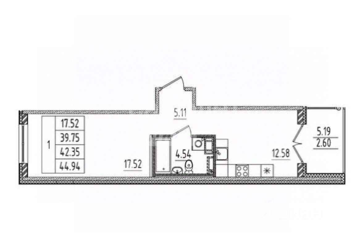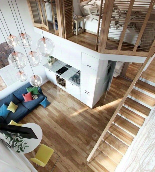 *комната 17,5 кв.м, вторая комната на втором уровне 16 кв.м, кухня гостиная с обеденной зоной на лоджии 12,5+5,5 кв.м