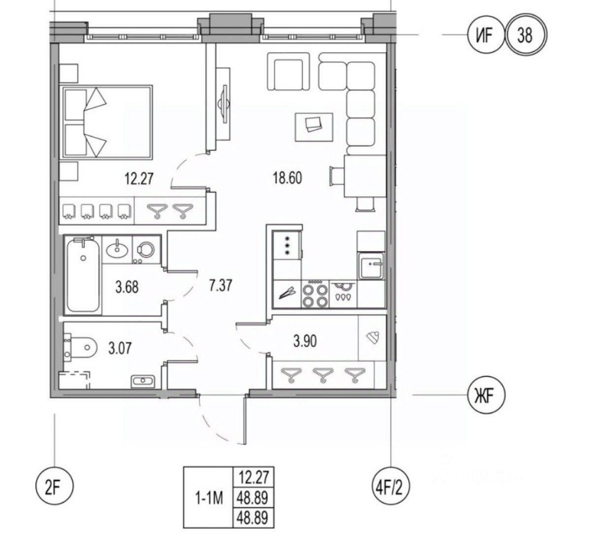 Санкт-Петербург, Красногвардейский район, м. Новочеркасская, ул. Стахановцев, д. 1, стр 1, Комплекс класса бизнес ЖК Малоохтинский 68 (Застройщик: компания LEGENDAIntelligent Development) Однокомнатная квартира (евро - двушка) с умной планировкой 48,89 м² на 2 этаже 9-этажного кирпично-монолитного дома 2024 года постройки. Идеальная планировка: просторная кухня 18.6 м² с гостевой зоной, спальня 12.27 м² с выделенной гардеробной, санузел и ванная комната 6,75 м², просторная система хранения - гардеробная 3,9 м², коридор - холл 7,37 м². Ключевые преимущества квартиры: Планировка квартиры разработана специально для проекта лабораторией LEGENDA запатентованные планировки. Высокие потолки 3 м создают ощущение простора и света. IP-домофон - современная система контроля доступа, видеонаблюдение. Вид на восток - летом не жарко, а зимой не холодно. Планировка этажа - пять изолированных квартир всегда тихо и спокойно. Преимущество ЖК: Архитектура: проект состоит из 16 секций, монолитные дома с остеклёнными фасадами. Жилые секции асимметрично расположены на территории жилого комплекса и окружены оазисами зелени. На первых этажах рестораны, пекарни, барбершоп, кофейни, магазины. Бесшумные лифты: грузовой и пассажирский. Колясочная в каждой парадной. Автоматическая передача показаний счетчиков. Подземный и наземный паркинг. Установлено видеонаблюдение. Закрытая территория: камерная атмосфера двора с местами для отдыха, аккуратными газонами и вечерней подсветкой. Изолированное от машин и посторонних пространство. Великолепная локация: Жилой комплекс находится в центре Санкт-Петербурга, на берегу Невы, с развитой инфраструктурой, НО СКРЫТ ОТ ГЛАЗ: между Малоохтинским проспектом, Заневским проспектом и улицей Стахановцев. 9 минут пешком до станции метро "Новочеркасская" и Малоохтинского парка. Вокруг множество достопримечательностей: комплекс Александро-Невской лавры, Смольный собор, самый высокий мост через Неву в черте города мост Александра Невского. В нескольких километрах два ТРК с магазинами и кинотеатрами "Охта Молл" и "Заневский лестница". В районе есть школы, детские сады, медицинские центры и поликлиники, супермаркеты, кафе и рестораны. Гарантия безопасной сделки: Юридическая чистота. Один собственник, материнский капитал не использовался. Все документы готовы к сделке. В квартире никто не прописан. Финансовая выгода. Подберем оптимальную ипотечную программу. Организация сделки "под ключ". От просмотра до получения ключей — экономия Вашего время. Этот объект для тех, кто ценит качество. Покажу в удобное для Вас время. Номер объекта: #1/537792/22464