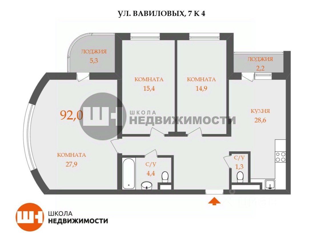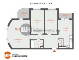 Рациональная планировка: Жилые комнаты площадью: видовая гостиная 27,9 кв.м.; отдельные комнаты: 14,9 кв.м.; и 15,4 кв.м.; кухня - гостиная 27,9 кв.м. Жилые комнаты выходят на разные стороны света имеется две качественно застекленные лоджии, 2 санузла, просторный холл.