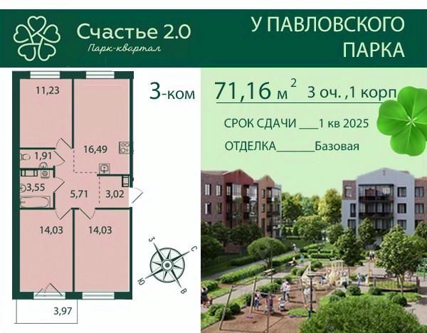 Квартира 180 в малоэтажном районе Счастье 2.0 - это особое, продуманное до мелочей, пространство для жизни в одном из самых живописных районов Санкт-Петербурга, в непосредственной близости от дворцово-паркового ансамбля Павловска. Все составляющие квартала направлены на максимальный комфорт его жителей: оригинальная архитектура, закрытые и безопасные дворы, современные планировки квартир, великолепная природа южного пригорода в сочетании с развитием собственной коммерческой и социальной инфраструктуры. Срок сдачи - 1 кв. 2025 года