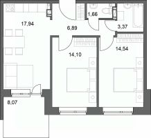 Предлагается к продаже Евро 3х комнатная квартира 60.92 кв.м с просторной кухней-гостиной 17.94 кв.м на первом этаже трехэтажного дома.