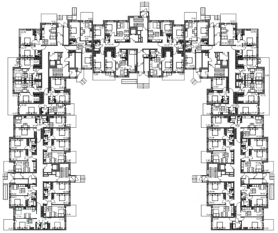 4-6 квартир на этаже. Высокие потолки, увеличенные окна, террасы на первых этажах