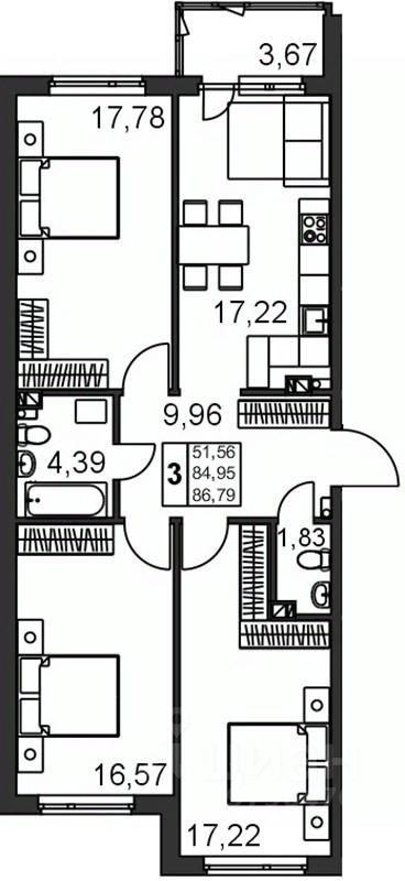 Продается замечательная 3 комнатная квартира в Ленинградской области от застройщика!