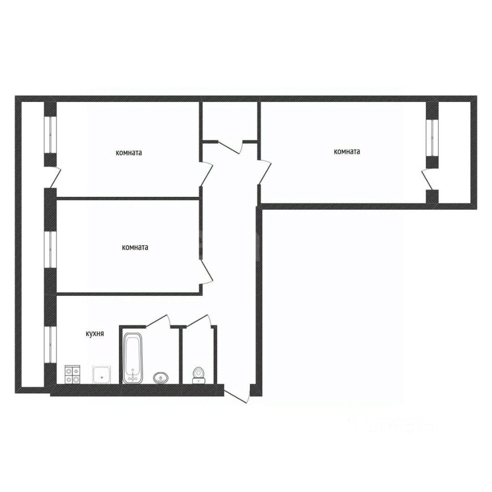 Продается трехкомнатная квартира общей площадью 56,6 м² в доме на улице Строителей, 26.