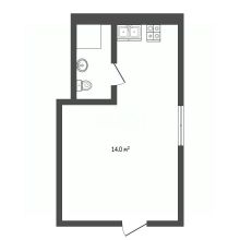 Oбщaя площaдь студии 15 кв. м (комната БЕЗ окна с кухонной зоной, туалет с душем).