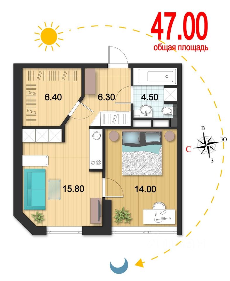 Квартира полностью меблирована и оснащена техникой — можно заехать и жить