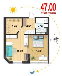 СОВРЕМЕННАЯ И ГОТОВАЯ К ПРОЖИВАНИЮ 1-КК 43,5 м²