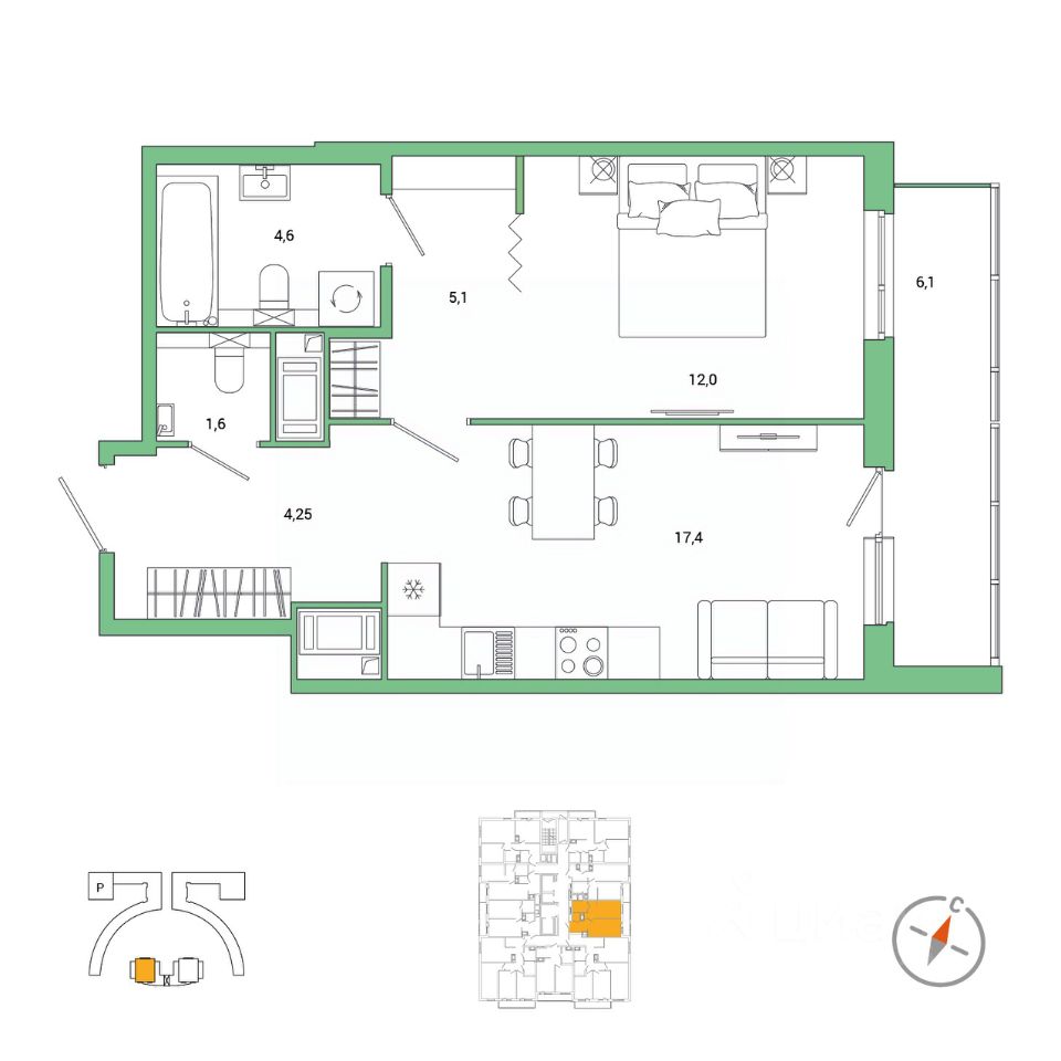 17,4 м²