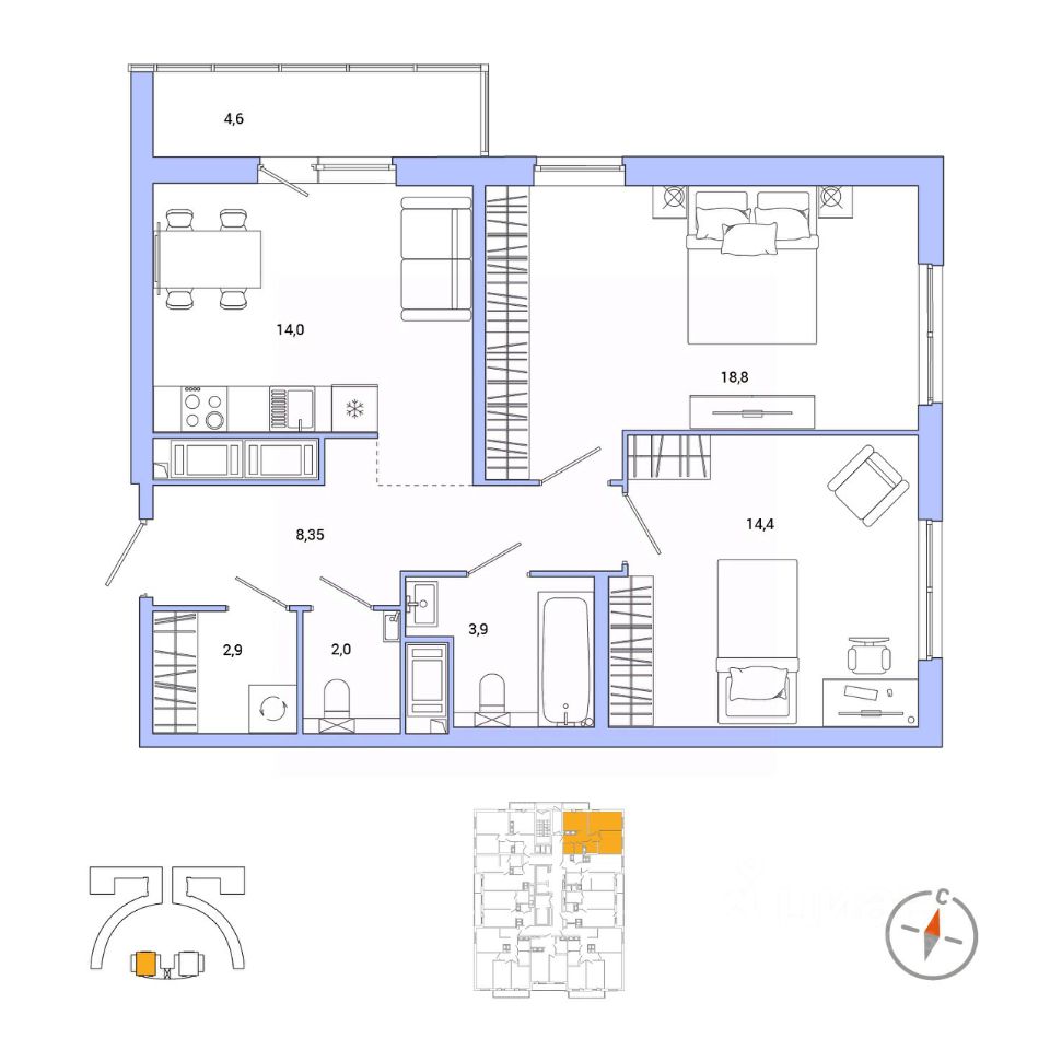 Продается 2 комнатная квартира 190 в ЖК ОКЛА