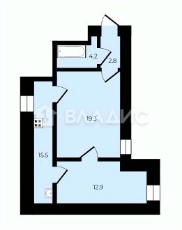 Высота потолков 2,7 м, кухня 14,5 кв.м, 2 комнаты 12,9 и 19,3 кв.м, санузел совмещенный.