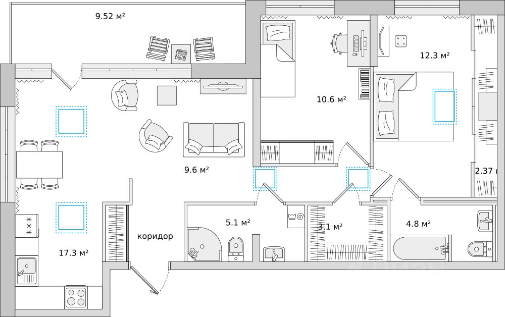 При покупке квартиры без участия агентов дарим сертификат новосела в магазин HOFF на сумму 50 000 рублей. Им можно оплатить не более 15% от суммы покупки.