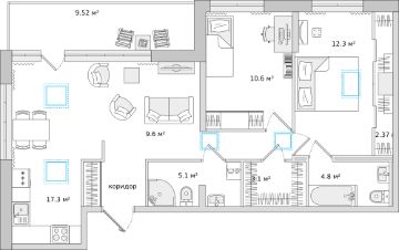 Продаётся двухкомнатная квартира в жилом комплексе ЦДС Dreamline, Корпус 1.1