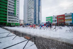 Во дворе дома находится детский сад, игровая площадка.
