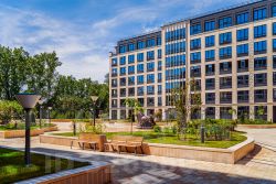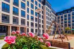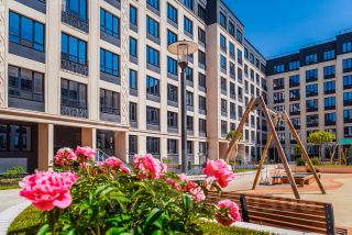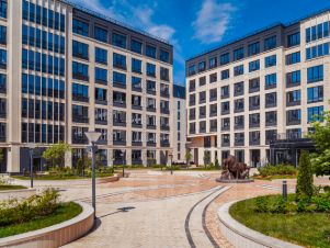 Дворовая территория закрыта от машин и посторонних. За порядком и безопасностью следит круглосуточная охрана и камеры видеонаблюдения. На территории комплекса есть спортивные и детские площадки, ландшафтное озеленение и собственная зона променада. В первом корпусе расположен детский сад на 100 мест., а на первых этажах вдоль Петровского проспекта есть коммерческие помещения для магазинов, ресторанов, кафе. Всего в 700 метрах от жилого комплекса расположен Петровский парк, идеально подходящий для прогулок и отдыха.