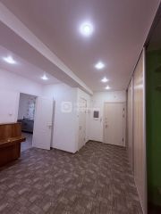 Продается просторная Евротрешка площадью 106,3 м= 2 комнаты ( 23,8м и 20,0м), кухня- гостиная 18,2м, входная группа 25,8м, 2с/у 10м и 2.5м, застекленный балкон 2,5 м, гардеробная 6м, двухсторонняя, высота потолков 3.05м по адресу Наличная 26 корпус 3, на 6 этаже 9 этажного дома 2014 года постройки. Ремонт выполнен по индивидуальному дизайн- проекту. Оснащение: стиральная машина,холодильник,посудомоечная машина.